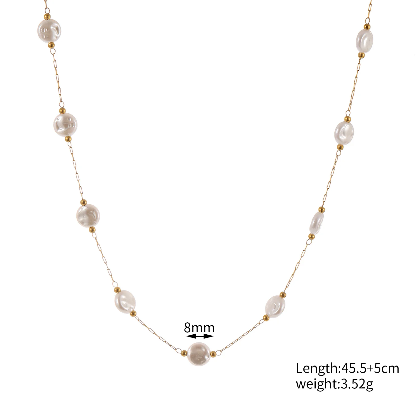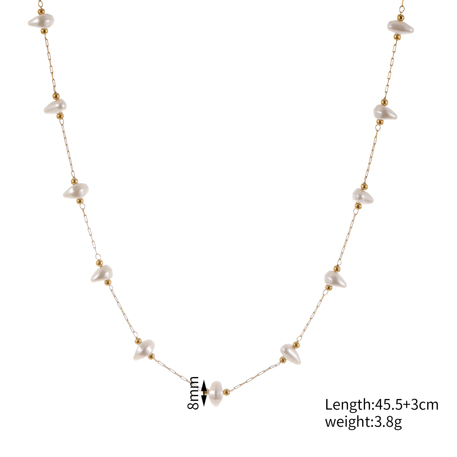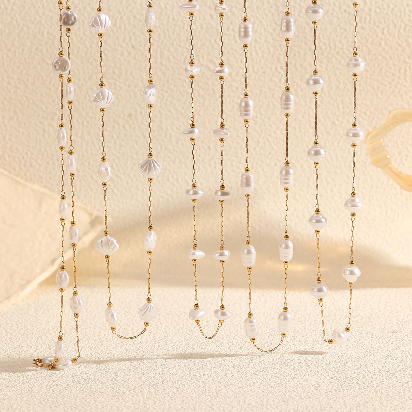 Baroque Pearl Necklace Irregular Shape Triangle Cylinder Shell Round Bean Beaded Drum Stainless Steel Fine Necklace for Women